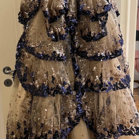 Endast använd vid ett par tillfällen och förutom en liten tråd i nacken är klänningen i väldigt fint skick