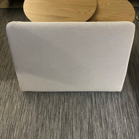 Det andra ryggstödet är inte monterat och i en annan färg som syns på bild.