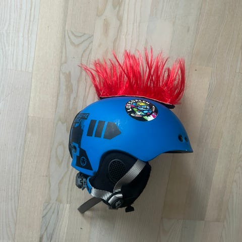 2 st likadana hjälmar, svarta, spänne för goggles. Rejält fodrade över öronen. 100 kr st.