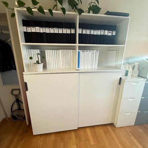 SpecifikationerMått: 915 mm bred x 1885 mm hög x 400 mm djup. 2 st I bra skick, stabil konstruktion. Nypris ca 7000 SEK. Säljer för 2500 SEK. Båda för 4500 sek. (förhandlingsbart). Hämtas i Nacka