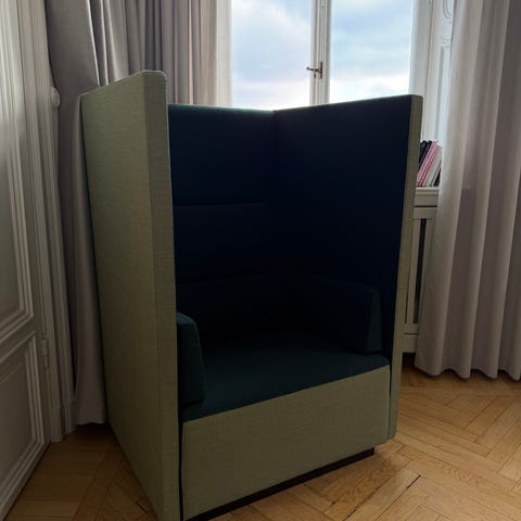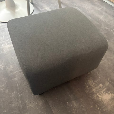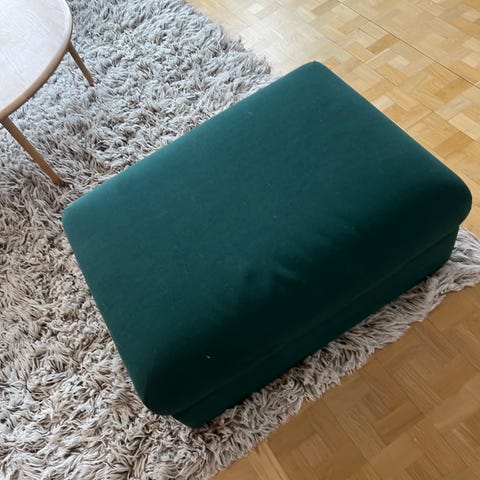Pall i kubform klädd i grön textil. Passar som extra sittplats eller fotpall i exempelvis vardagsrum, hall eller kontor. Stoppad sits för mjukare komfort och stabil form som gör den enkel att placera intill vägg eller tillsammans med andra möbler.