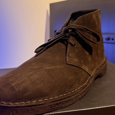 Acnes chukka boots, motsvarigheten till den klassiska och tidlösa modellen från Clark’s. Sparsamt använda och med slitsula från Davidssons skomakeri.