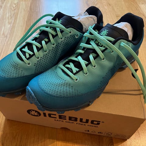 Än är det mycket vinter kvar. När det är is och snö är Salomon Spikecross med nio dubbar i varje sko vad som behövs för att löpa/gå säkert. Liten storlek, förmodligen lagom för den som har 39 i skostorlek.