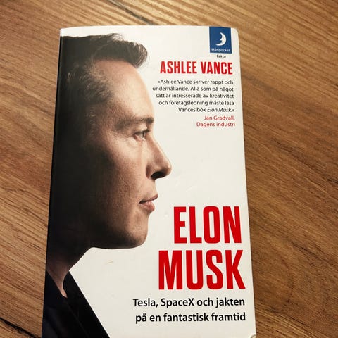 1) Ashlee Vance – "Elon Musk: Tesla, SpaceX och jakten på en fantastisk framtid". Inbunden bok på svenska om entreprenören Elon Musk, med fokus på hans liv, bakgrund och arbete med bland annat Tesla, SpaceX, PayPal och SolarCity.