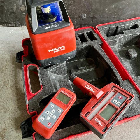 Bosch GRL 400 H Professional roterande laser för horisontell nivellering. Utrustningen inkluderar roterande laser, mottagare, laddare/nätadapter och tillbehör i transportväska. Medföljer gör även Bosch BT 160 Professional stativ i aluminium med bärrem. Systemet är avsett för mät- och nivelleringsarbeten vid bygg- och anläggningsprojekt inomhus och utomhus.