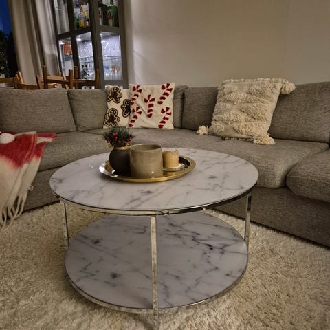 MATERIAL: Stålunderrede och 6 mm glasskiva med marmorprint