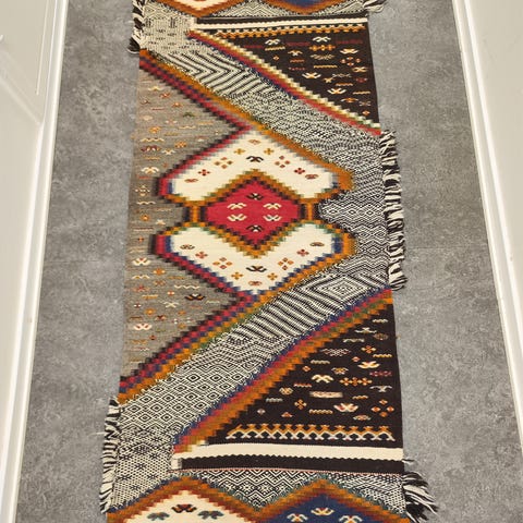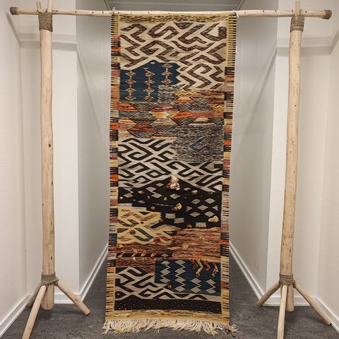 Denna handknutna Ait Ougherda-matta är ett unikt mästerverk av traditionellt hantverk. Varje tråd är noggrant vävd för att skapa komplexa, geometriska mönster inspirerade av naturen och kvinnorna i bergen där mattan har sitt ursprung. Naturlig ull i levande färger kombineras med silkestrådar som ger en subtil lyster och extra djup. Mattan är helt unik – ett totalt one of a kind-exemplar som inte finns någon annanstans i världen. En exklusiv och tidlös del av heminredningen.