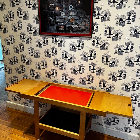 Säljer ett rullbord IKEA "Strajk" designat av Tomas Jelinek på 70-talet. Bordet är i okej skick men har en blämma på toppskivan och ett hjul som är lite trasigt, annars fungerar det utmärkt.