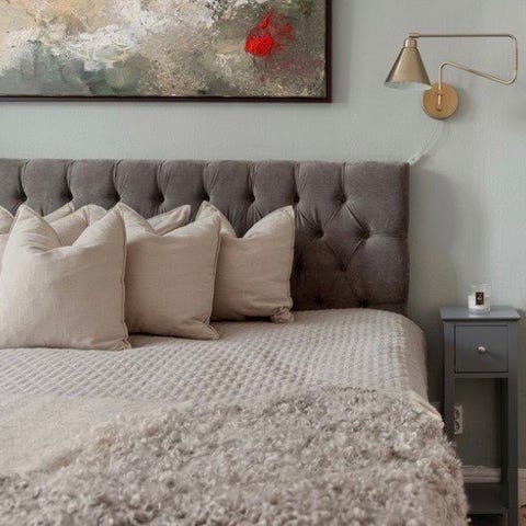Sänggavel grå sammet