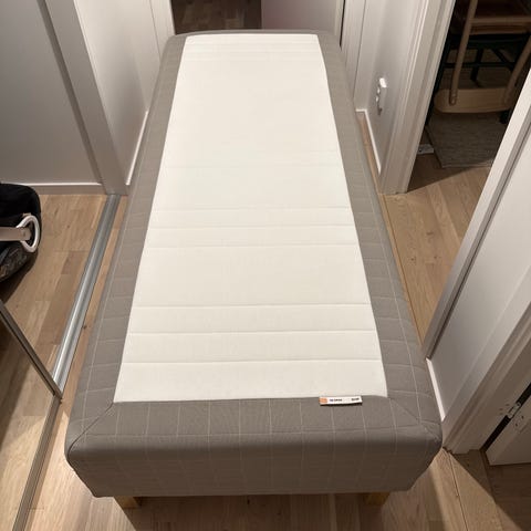 IKEA Sultan Stamnes säng med 8 stycken metalben. En fast och en medelmjuk. Bred 80cm.