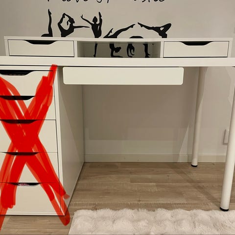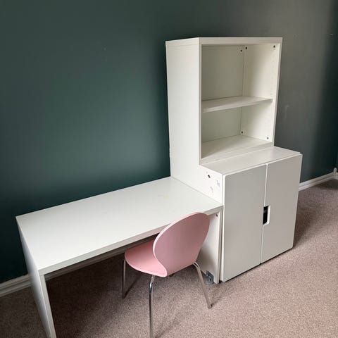 Ikea småstad skrivbord och bänk med förvaringslåda.