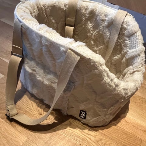 Ryggsäck för husdjur i svart och grå färg. Väskan har öppning upptill för att djuret ska kunna titta ut, samt nätpartier på sidorna för ventilation. Justerbara axelremmar och bärhandtag upptill. Passar för transport av mindre husdjur, till exempel vid promenader eller resor där man vill bära djuret på ryggen.