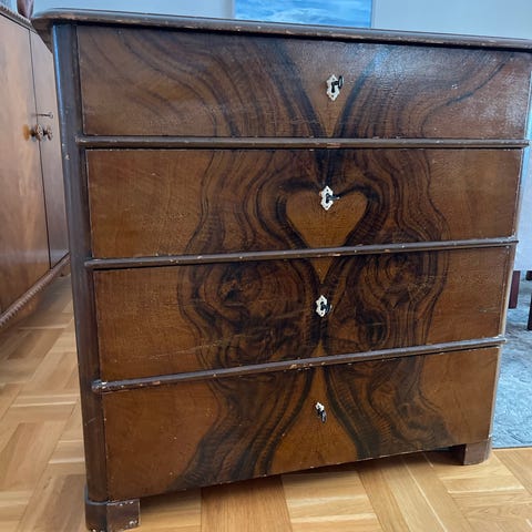 Gammal byrå som är ommålad, skavanker finns, 100cm hög.
