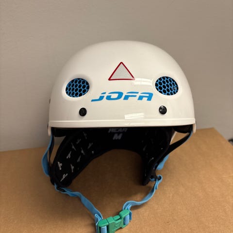 Jofa hjälm i blå färg för barn. Hjälmen har flera ventilationshål och justerbart hakband. Passar exempelvis för skridskoåkning eller annan sport där hjälm rekommenderas.