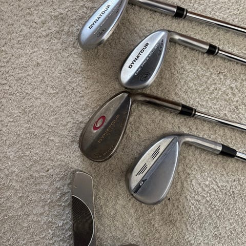 Golfset med flera järnklubbor och tillhörande golfbag. Klubborna har metallskaft och grepp i syntetmaterial. Setet innehåller flera olika järn med olika loft, lämpliga för spel på fairway och inspel mot green. Golfbagen är i tygmaterial med flera fickor för förvaring av bollar, peggar och annan utrustning. Passar för golfspelare som behöver ett komplett set järnklubbor med bag.