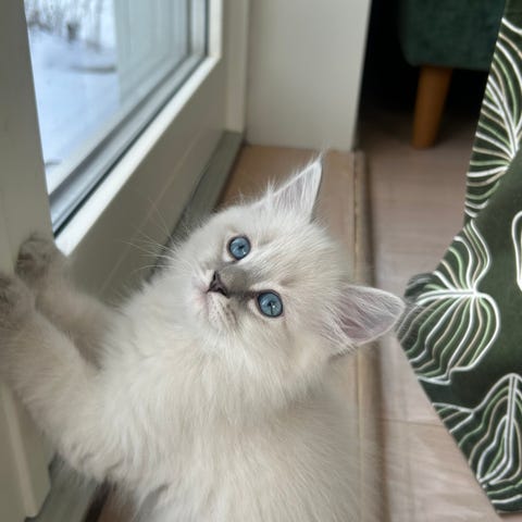 Hon är snart 3 månader gammal, lekfull, snäll och social.