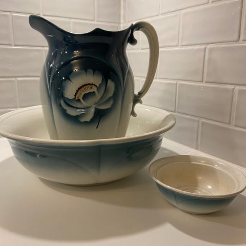 gefle Potta och kanna, finns en spricka i lasyren, annars fint skick