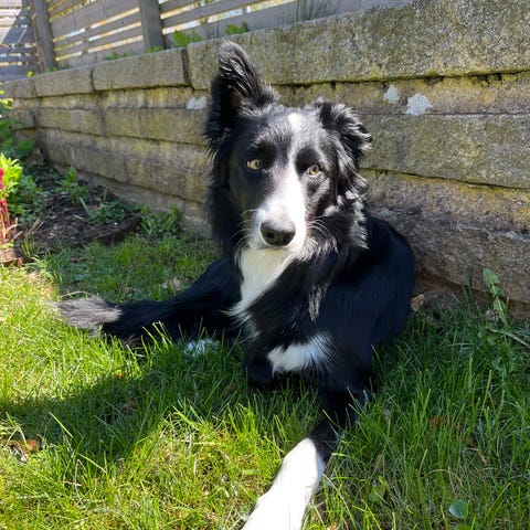 Är van att vara lös och fri då vi bor med stor tomt. Kan gå i koppel, men behöver tränas mer.