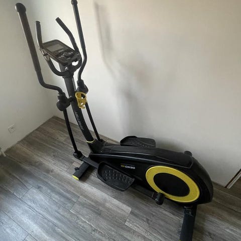 Crosstrainern har ett elektroniskt displayfönster som visar grundläggande träningsdata som tid, hastighet, distans och uppskattad kaloriförbrukning. Handtagen ger möjlighet till träning för både över- och underkropp samtidigt. Fotplattorna är breda och räfflade för bättre fotfäste.