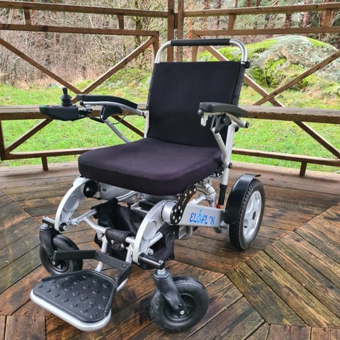 Etac rullstol i svart utförande. Manuell modell med stora bakhjul och mindre svänghjul fram. Utrustad med fotstöd, armstöd och handtag baktill för medhjälpare. Tygklädsel i rygg och sits. Hopfällbar och avtagbara fotstöd lämpar den sig för transport. Sittdyna medföljer ej.