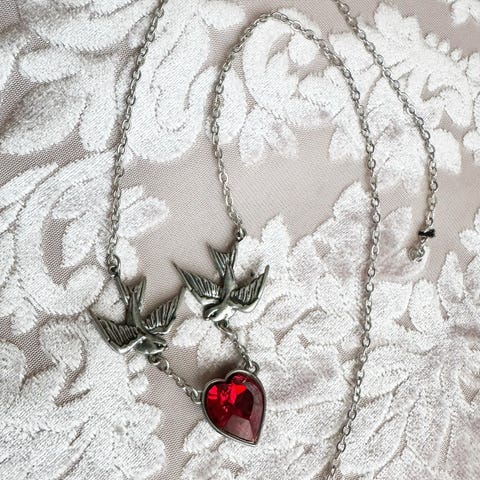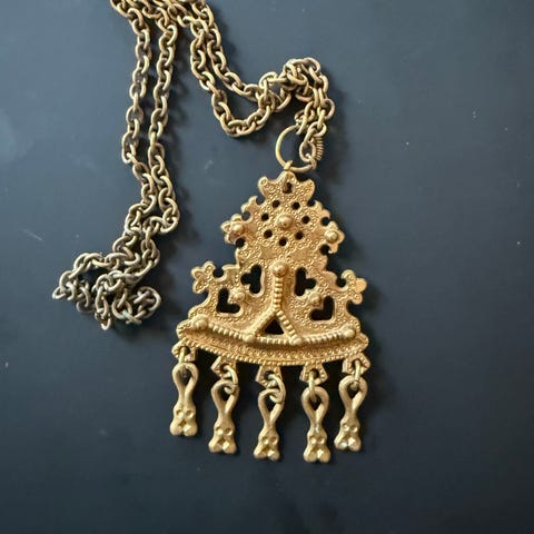 Goth Neckless. Asian Style. / Halsband i metall med dekorativt, detaljerat mittparti och hänge. Kedjan har flera små hängande dekorationer längs sidorna.