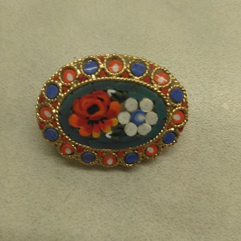 Antikt italienskt kors i koppar med mikromosaik / Antique Micro Mosaic Cross