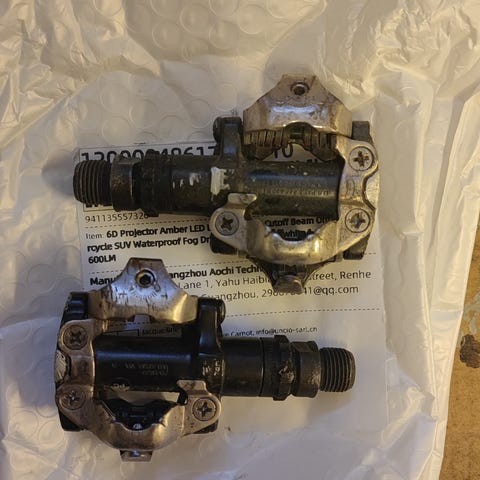 Shimano cliplesspedaler, ett par plattformspedaler samt Zipp flaskhållare. Två cykelslangar från Continental Conti Tube, för racerdäck. Säljs ihop.