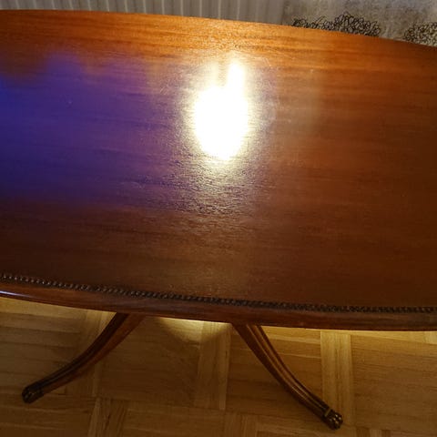 Soffbord i ädelträ med ben i laserad bok