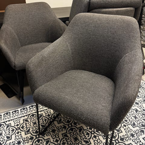 6 stycken stilrena grå matbordsstolar som är väldigt sköna. Nypris över 1000kr styck säljer 6 stycken för 600kr. Vissa är lite solblekta men inget som man stör sig på.