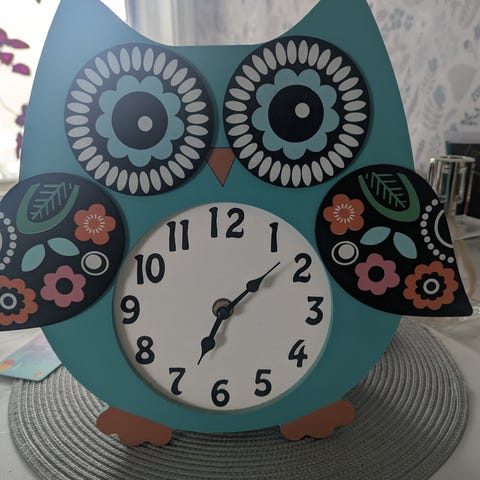 Bordslampa och väggklocka i matchande färg till barnrummet