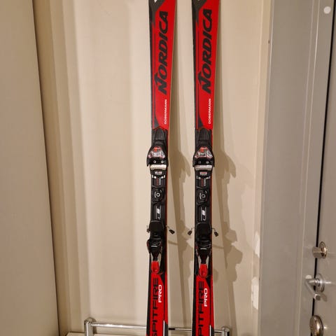 Nordica Dobermann World Cup SL alpina skidor med längd 165 cm. Passar för pist- och slalomåkning. Bindningen är en Marker xcell 18 (nypris 3600). Skidorna är sommarvallade redo för säsongen. Belag och kanter håller nog nån säsong till.
