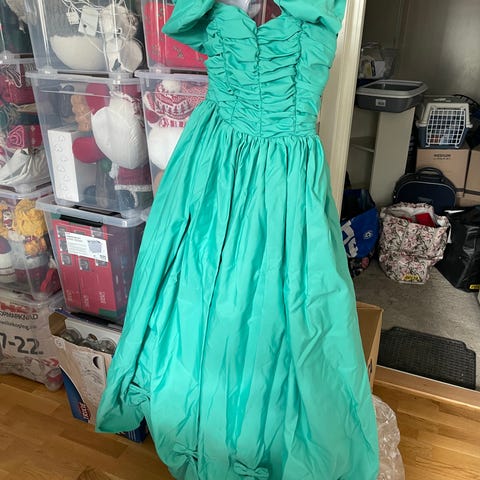 Vintage korallgrön klänning festklänning