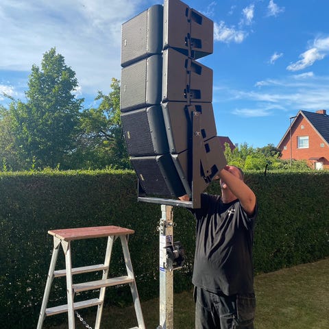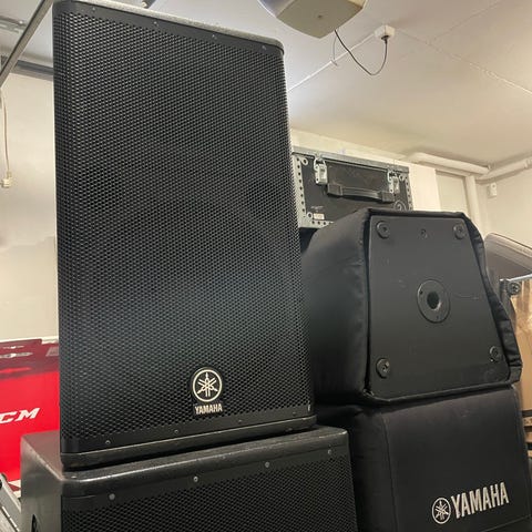 Högtalarstativ, notställ, mikrofonstativ, lampor och sladdar medföljer (vissa sladdar saknas)