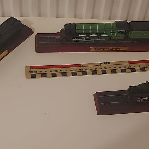 Lok i fint skick. DB BR 103 modell lokomotiv i beige och röd färgsättning. Loket är en detaljerad modell av ett elektriskt lok med strömavtagare på taket och märkning 103 120-5 på sidorna. Passar för modelljärnvägssamling eller som del i en tåganläggning. Exakta mått, skala och material är inte angivna men modellen är avsedd som leksak eller samlarobjekt för tågintresserade.