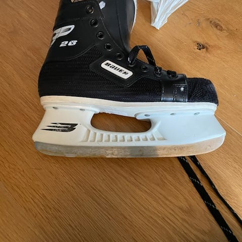 Visent ishockeyskridskor i storlek 40. Skridskorna är svartvita med snörning framtill och vit innersida vid skaftet. Sulan och skenan är i vitt respektive metallfärg. Passar för ishockey och allmän åkning på is.