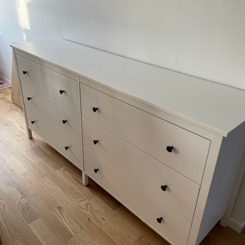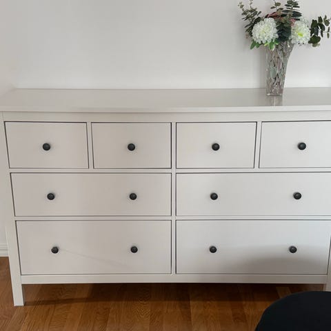 Story byrå i svartlackerad MDF med metallknoppar, FSC®-märkt för miljöansvar. Sex rymliga lådor för förvaring.