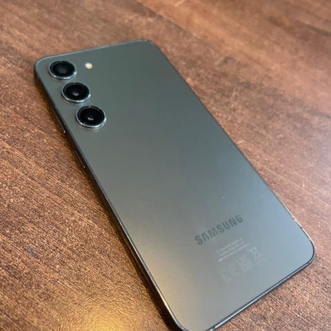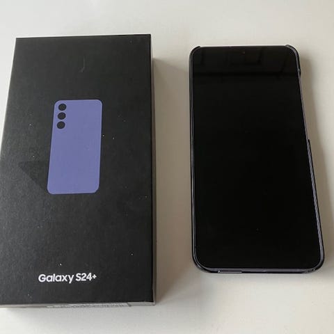 Samsung Galaxy S24 smartphone med 128 GB internminne. Modellen har pekskärm över nästan hela framsidan och tre kameror på baksidan. Enheten passar för vardaglig användning som samtal, meddelanden, surf, appar, foto och video. Stöd för trådlös uppkoppling och lagring av appar, bilder, musik och andra filer på det inbyggda minnet på 128 GB.