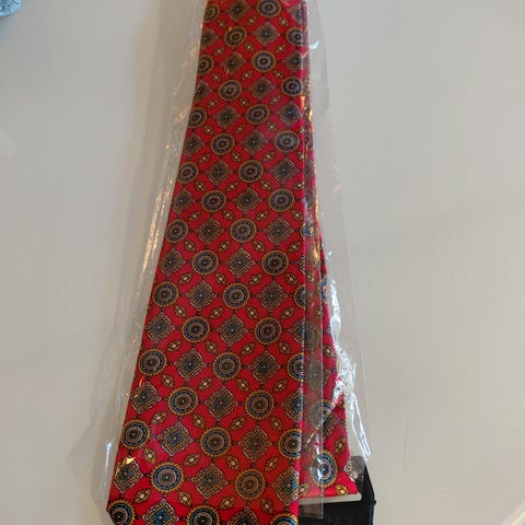 Använd men i fint begagnat skick förutom att det finns ett litet märke längst ner på slipsen