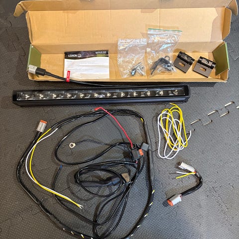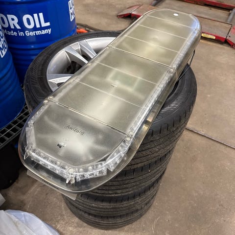 Exklusiv blixtramp mycket tunn med trådlös fjärrkontroll som lampor visar exakt det samma som visas på rampen. 1235mm lång knappt använd. Suttit på en EPA traktor en kort period.