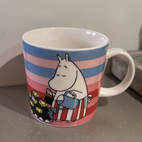 Arabia Mumin mugg i porslin, Rosenträdgård, 2010 i absolut nyskick,