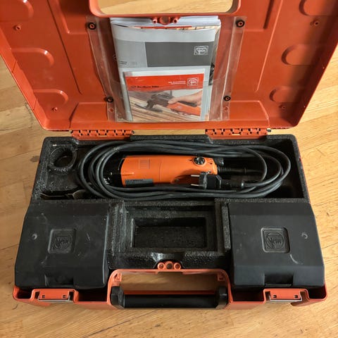 Polermaskin i röd färg med elsladd. Levereras i hård förvaringsväska med polerplatta och polerpad. Lämplig för polering av lackerade ytor, till exempel bil eller båt. Maskinen har handtag för tvåhandsfattning och justerbart stödhandtag framtill för bättre kontroll vid arbete.