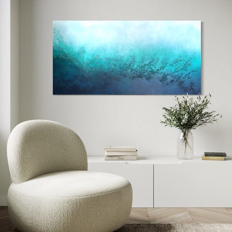 Abstrakt originalmålning i lugna blå, turkosa och jordnära toner. Tavlan har ett mjukt, harmoniskt uttryck som skapar en rofylld känsla i rummet. Passar utmärkt i moderna och minimalistiska hem. Endast ett exemplar.