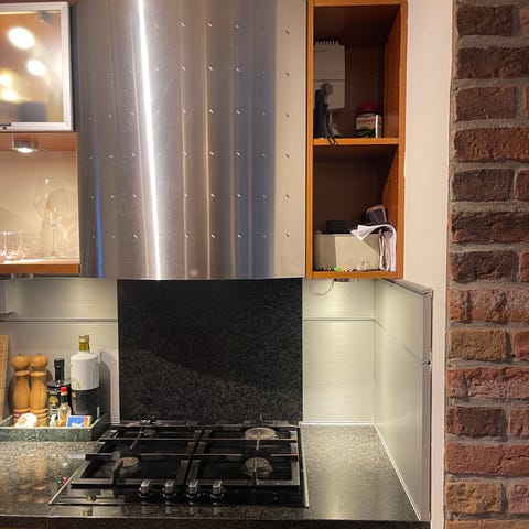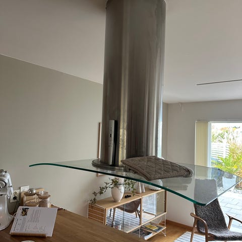 helt nyt i förpackning. Stålfärgad väggmonterad köksfläkt