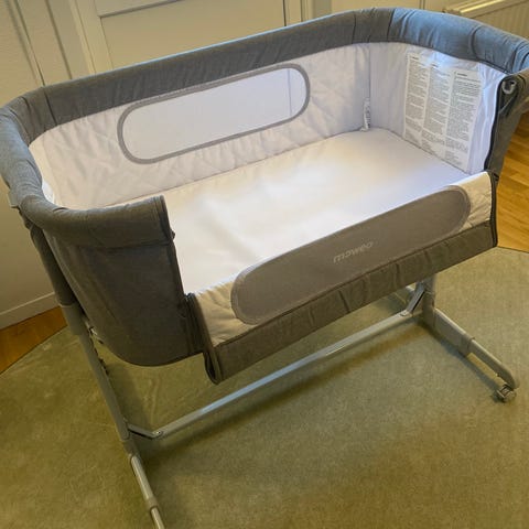 En Moweo ALEX Bedside Crib i rosa. Hel och fin. Väldigt lite använd.