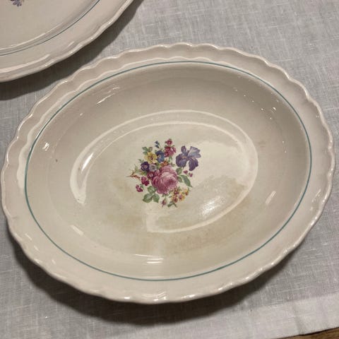 6 st assister i benvit färg med ursnyggt mönster. 50/60-tal. Säljes alla tillsammans för 500 kr.