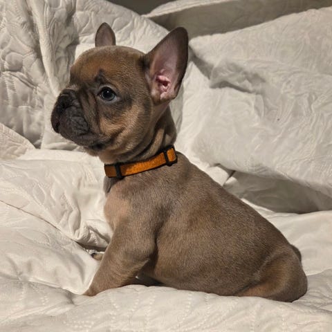 Nu söker Hennesy ett nytt hem. Han är en Big Rope fransk bulldog på 2 år i färgen new shade royo. Hennesy är en mycket liten och kompakt hane som väger cirka 8–9 kg. Han har innehar stamtavla, är köpt från en väldigt känd kennel i England.