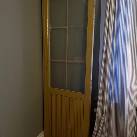Dörren är i väldigt fint skick och har hela, fina glasrutor. Utrustad med äkta mässinghandtag.