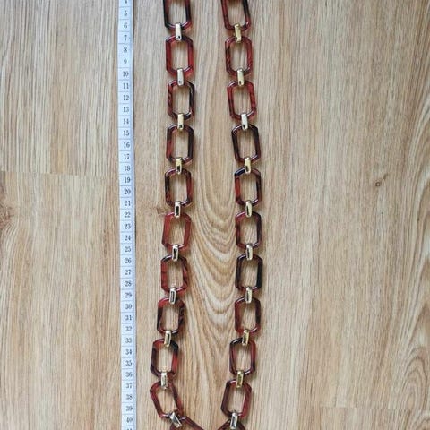 Armband för kvinna i plast. Armbandet består av runda, platta plastdelar i ljusa och bruna toner trädda på en elastisk tråd. Passar som vardagssmycke eller accessoar till olika outfits.