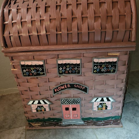 Trälåda/kista med lock i naturfärgat trä med svarta metallbeslag. Invändigt finns ett större fack samt ett mindre avdelat fack nära locket. Passar för förvaring av exempelvis textilier, leksaker eller andra hushållssaker. Locket är gångjärnsfäst och lådan har handtag och dekorativa beslag på sidorna och framsidan.