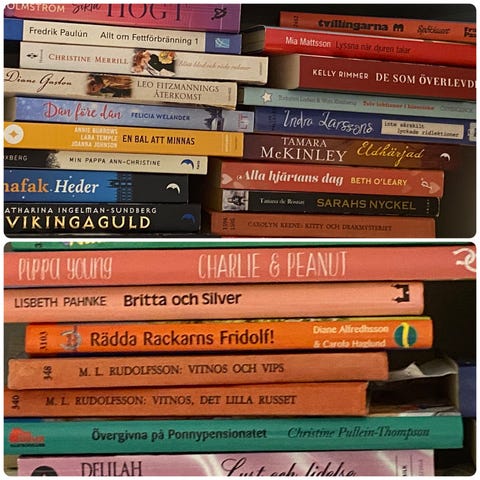 Nio böcker till säljes för 250 kronor—pris går att diskutera då olika böcker är dyrare än andra (award winners etc);